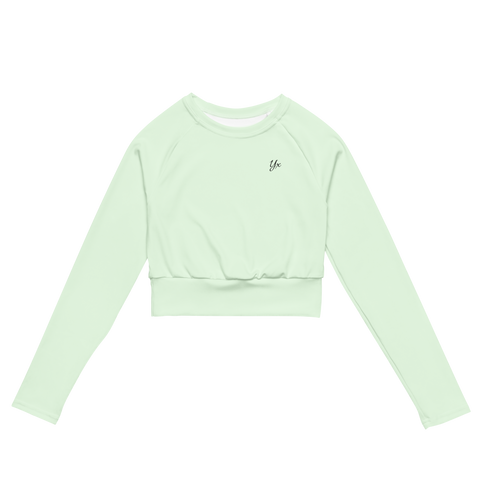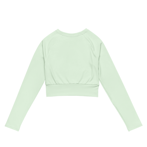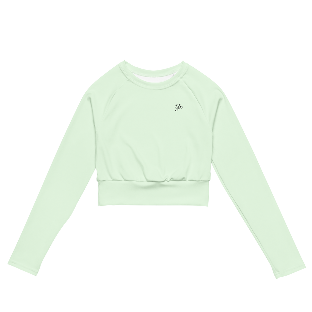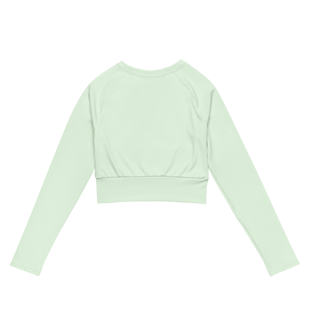This long-sleeve crop top is made of recycled polyester and elastane, making it an eco-friendly choice for swimming, sports, or athleisure outfits. The crop top has a tear-away care label and a wide, double-layered waistline band for a comfortable fit.